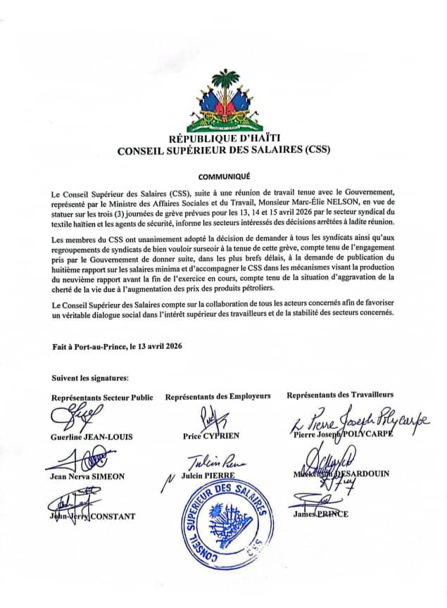 Le Conseil Supérieur des Salaires (CSS) avait pourtant demandé la suspension du mouvement, à la suite d’une réunion avec le gouvernement, représenté par le ministre des Affaires sociales et du Travail, Marc-Élie Nelson.