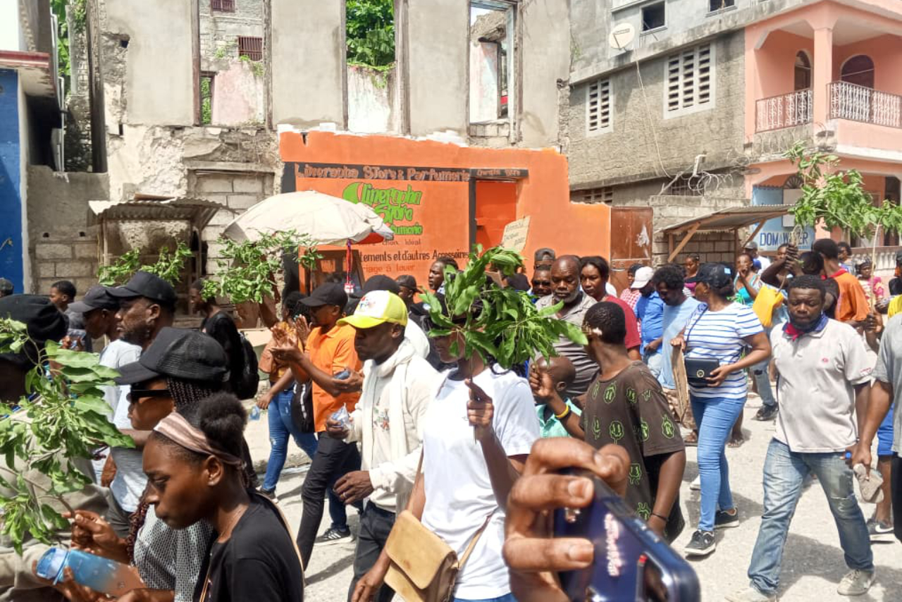 Suite à l’attaque de groupes armés à Seguin, section communale de Marigot, dans la nuit du 13 au 14 avril 2026, des manifestants ont parcouru les rues de Jacmel. Ils brandissaient des pancartes et scandaient des slogans réclamant justice, sécurité et intervention immédiate de l’État.